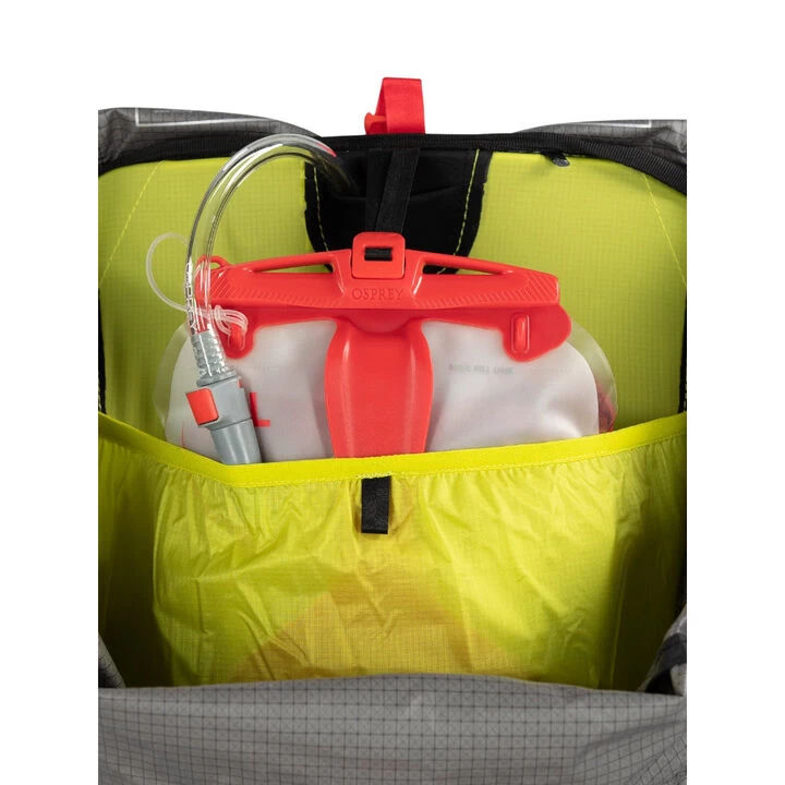 - Internal hydration sleeve with center back hose port and Osprey® Hydraclip for easier reservoir hanging
